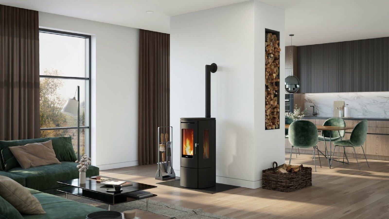 Le Tjallmo est l'innovation dans le domaine des poêles à pellets. Ce poêle à pellets est équipé de fenêtres latérales supplémentaires permettant de mieux voir les flammes.