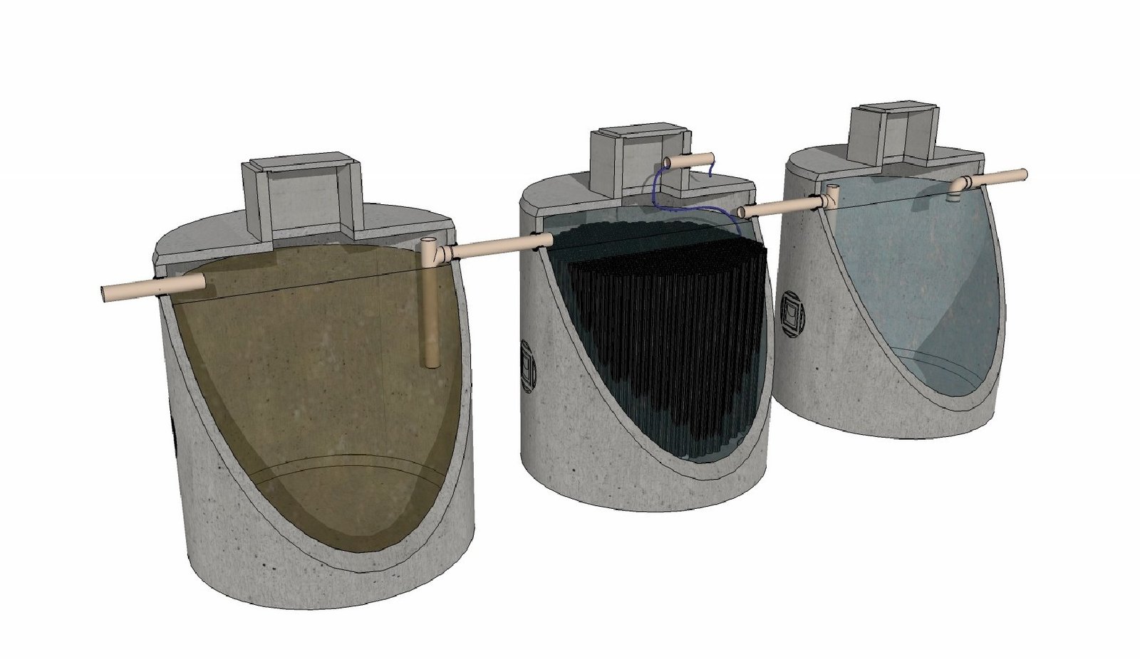 Les installations sont construites avec des composants fiables et solides (béton, polyéthylène et inox). Il n'est pas nécessaire de prévoir de l'électricité, des pompes ou des moteurs dans la cuve (suivant le modèle). Les installations se basent sur la technique du lit fixe aéré noyé. Une technique éprouvée qui garantit une faible production de boues secondaires. Grâce à sa superficie spécifique, sa forme, la bonne adhésion et l'aération homogène et bien distribuée, le risque d'obturation est pratiquement exclu.