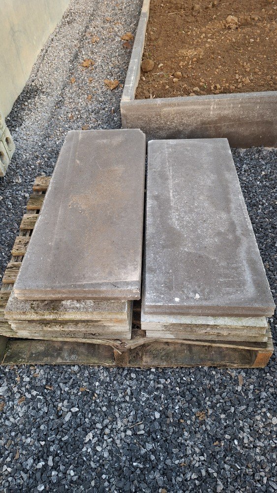 Description: Pierre de bordure avec joint à tenon et mortaise, également connue sous le nom de pierre de bordure ou kerbstone.