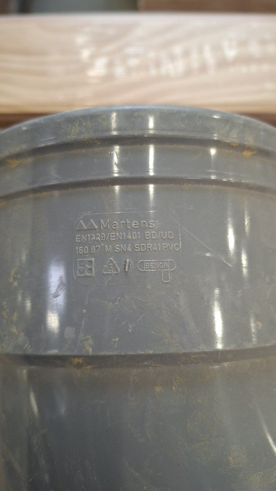 Martens – Coude PVC BENOR 87° – Ø 160 mm – Manchonné – Gris