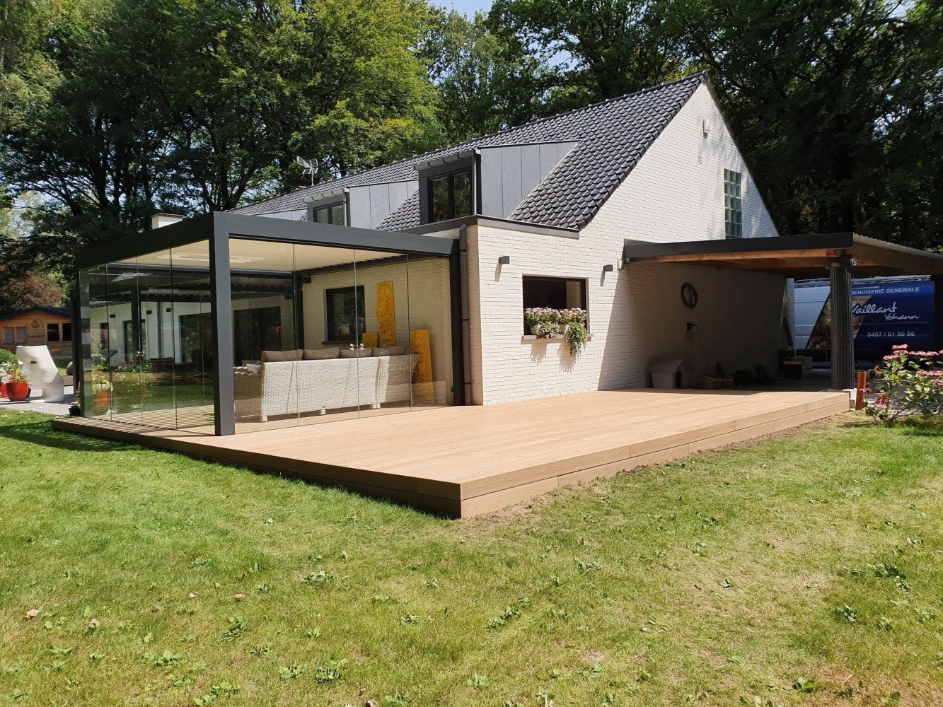 Les terrasses BambooTouch® composites sont composées de 60% de sciures, de 30% de polyéthylène haute densité recyclé (PEHD) et de 10% d’additifs (agents anti U.V., antioxydants, liants et durcisseur, stabilisant, colorant). Les composants sont mélangés sous haute pression, donnant des lames très denses, imputrescibles et durables. La qualité de nos produits nous permet d’offrir une garantie jusqu’à 10 ans à condition que la pose soit faite selon nos instructions, en respectant les règles du pays, en utilisant nos accessoires (clips, vis...), ainsi qu’en suivant nos recommandations d’entretien.